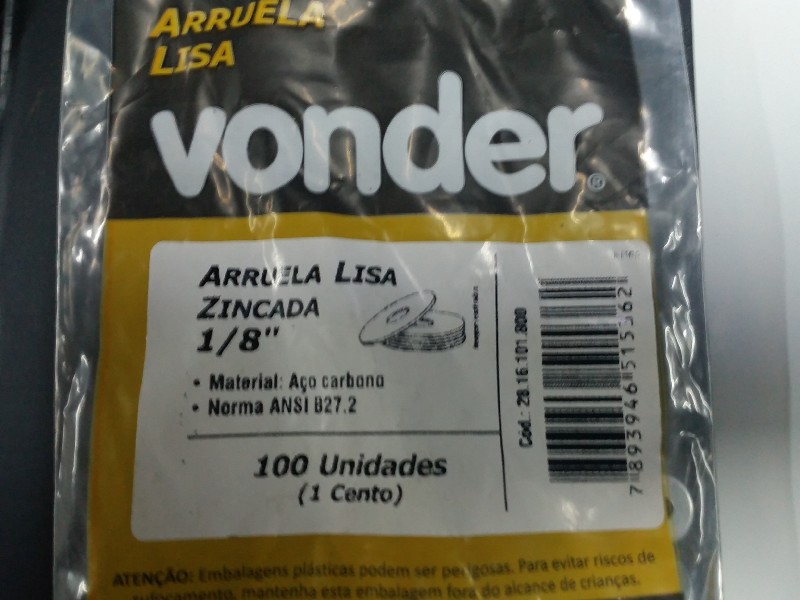 2672 | Arruela lisa zincado 5/8 ( Preço por unidade ) | Acoplamento, Agitador, Batedor | Arruela lisa zincado 5/8 polegadas.Arruela lisa 5/8 polegadas.Material: Aço carbono.Norma: ANSI B27.2* * ATENÇÃO: Imagens ilustrativas!... | R$1,12 |